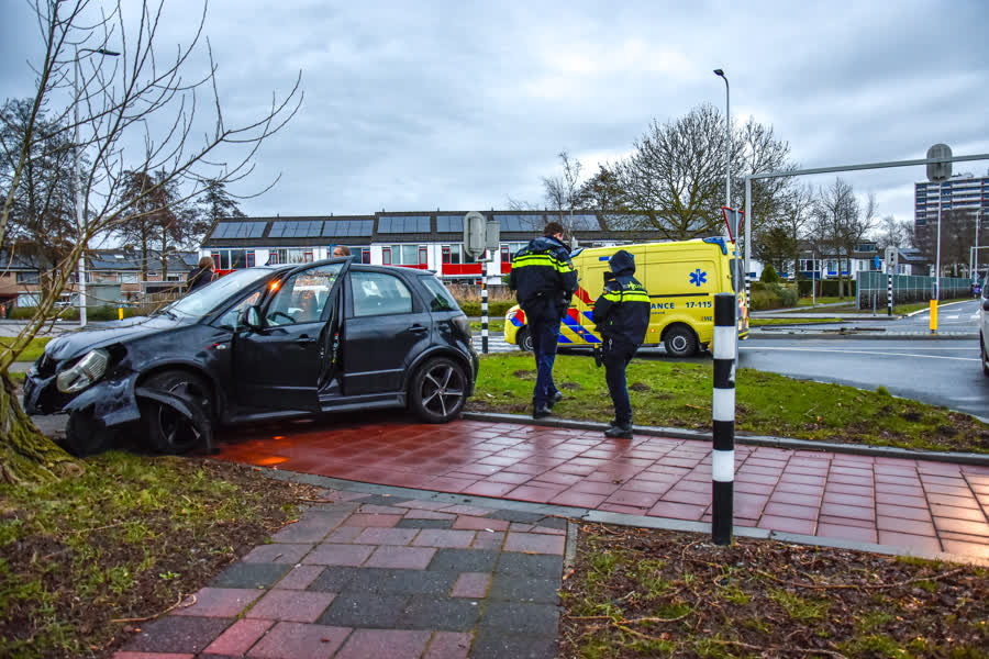 Een bestuurder reed met zijn auto in de richting van de Baljuwlaan en ter hoogte van het kruispunt met de Copernicuslaan ging het mis. Eerst ging de auto over een verkeersbord heen en vervolgens eindigde de auto tegen een boom.