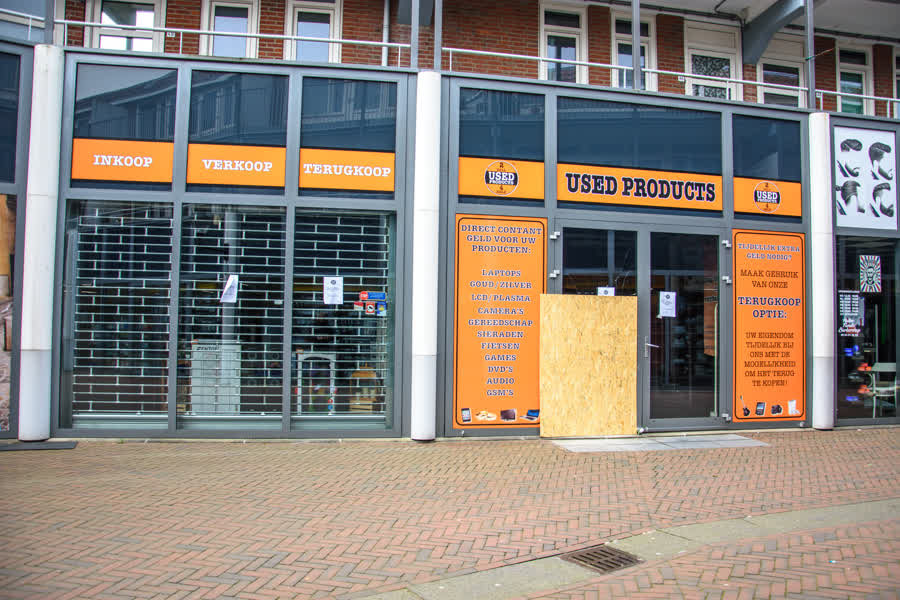 De politie ontving een melding nadat omwonenden wat gerommel en gerinkel hoorden beneden in de winkelstraat. Uiteindelijk zagen ze dat er werd ingebroken in een winkel met gebruikte producten. Deze winkel was tijdelijk tot nader order gesloten, zo is te zien op de voordeur.