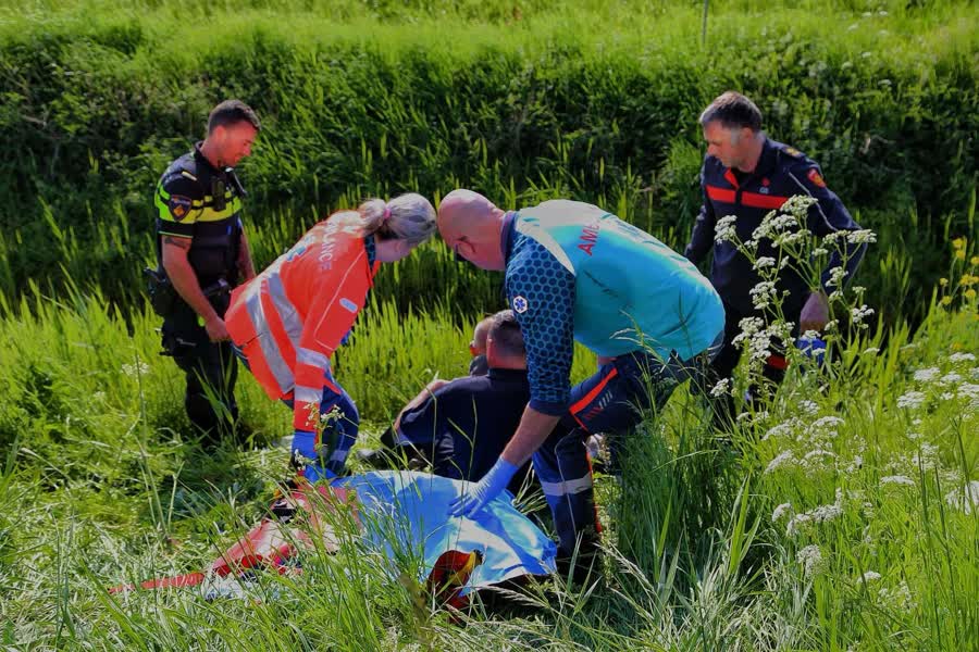 Met behulp van de chauffeur, agenten en een medewerker van de Gezamenlijke Brandweer is de man met een vacuümmatras uit de slootkant gehaald.