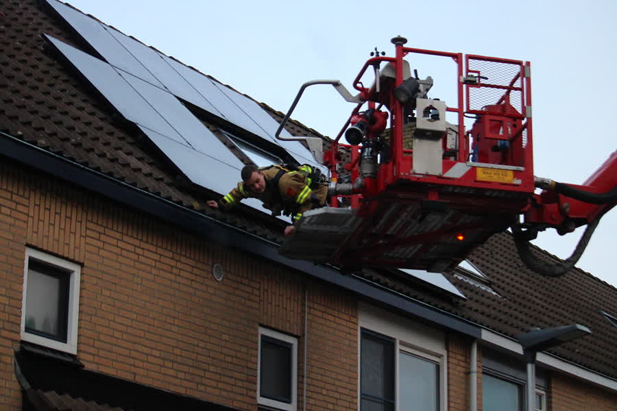 De brandweer kwam ter plaatse met een hoogwerker maar bij nadere inspectie bleek het niet om rook te gaan, maar om om condensvorming die was aangezien voor een brand in het dak van een woning.