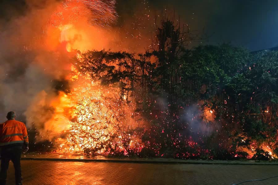 Abbenbroek - Woensdagmorgen 1 januari om 00.40 uur was brand ontstaan aan de Schoolstraat in Abbenbroek. Hier had een coniferenhaag vlam gevat.
