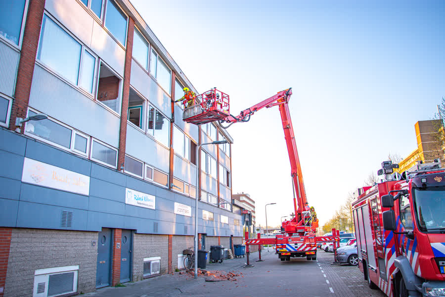Spijkenisse - Vrijdagochtend 4 april rond 07.08 uur is de brandweer opgeroepen om onderzoek te doen nadat een gedeelte van een gevel is afgebroken op de Winston Churchillaan.