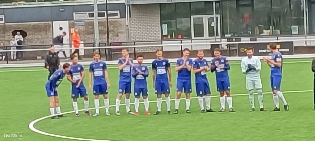 Maar wat de thuisclub kan konden de bezoekers blijkbaar ook, want praktisch vanaf de aftrap kwam de bal rond de 16 van de thuisclub bij een van de blauw hemden terecht en diens poeier ging van een Spartaans been en de paal naast het doel van de thuisclub. De hoekschop leverde verder geen gevaar op.