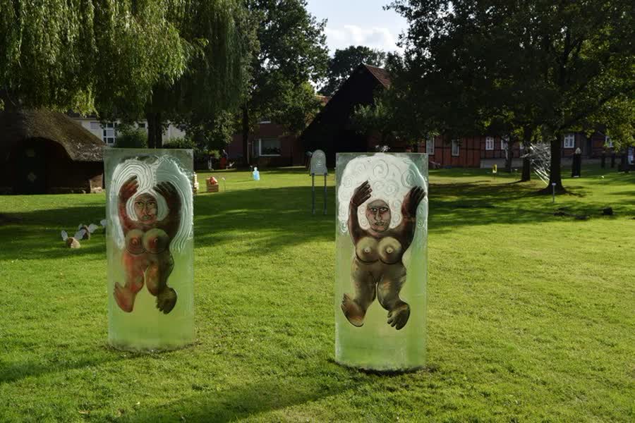 In het weelderige groen van de rustieke tuin staan rond de tweehonderd beelden en sculpturen van onder meer glas, cortenstaal, brons en keramiek.