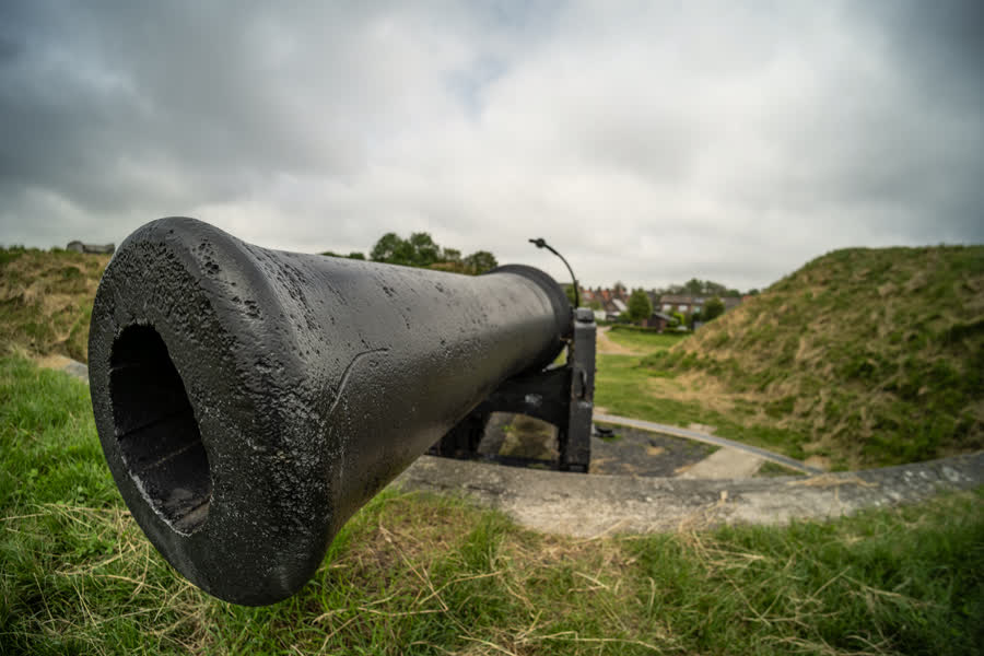 Ook kijken we in de ondergrondse kazematten waar kanonnen stonden opgesteld om de eigen wal te beschermen.