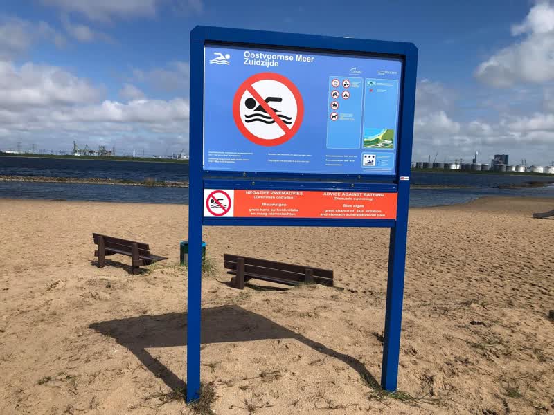 Alleen het water van officieel aangewezen zwemlocaties wordt gecontroleerd op kwaliteit en fysieke veiligheid. Deze zwemlocaties zijn te herkennen aan een blauw informatiebord van de provincie en de ODMH. Op het bord staat een plattegrond met daarop de zone waarin veilig gezwommen kan worden en de plaats van een aantal voorzieningen. Op deze borden wordt bovendien aangegeven als er iets niet in orde is met de waterkwaliteit, veiligheid of hygiëne. Check deze borden dus altijd voor je gaat zwemmen. Indien er een maatregel wordt ingesteld voor een locatie, laten zij dit aanvullend ook weten via @ODMH_Zwemwater op X (Twitter).