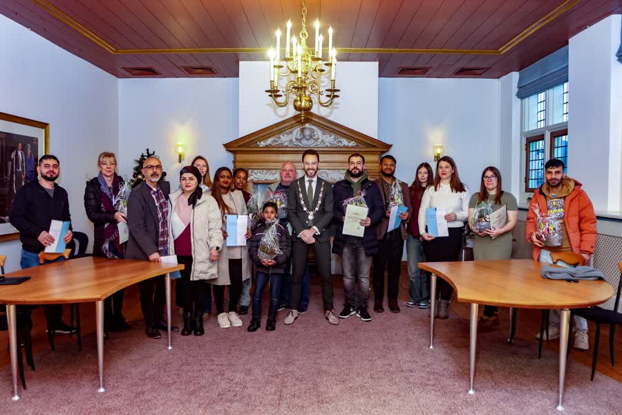 Spijkenisse - Wethouder en locoburgemeester Martijn Hamerslag verwelkomde de echtparen die tussen se...