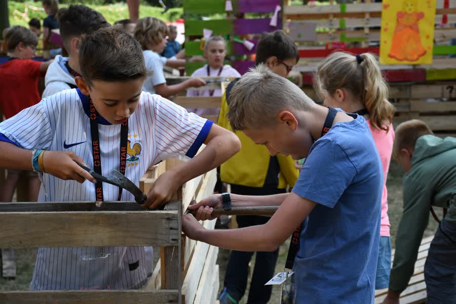 Niet alles ging perfect: bij een andere hut bleef weinig over behalve wat ingetrapte pallets. Toch lieten de kinderen zich niet kisten. Ondanks enkele regenbuien keken ze terug op een week vol leuke herinneringen.