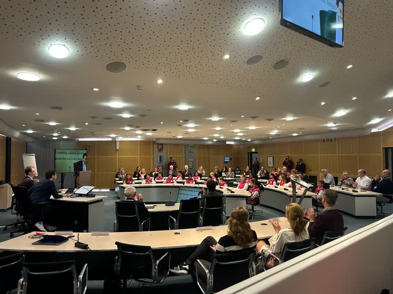Spijkenisse – In de raadszaal van het stadhuis is vanochtend de nieuwe Kindergemeenteraad van Nissewaard officieel geïnstalleerd. Burgemeester Cor Lamers en wethouder Hanneke Stengs leidden de plechtige bijeenkomst, waarbij twintig jonge raadsleden hun installatieverklaring aflegden. ‘Ik ben trots op mijn kind’, aldus een enthousiaste ouder.