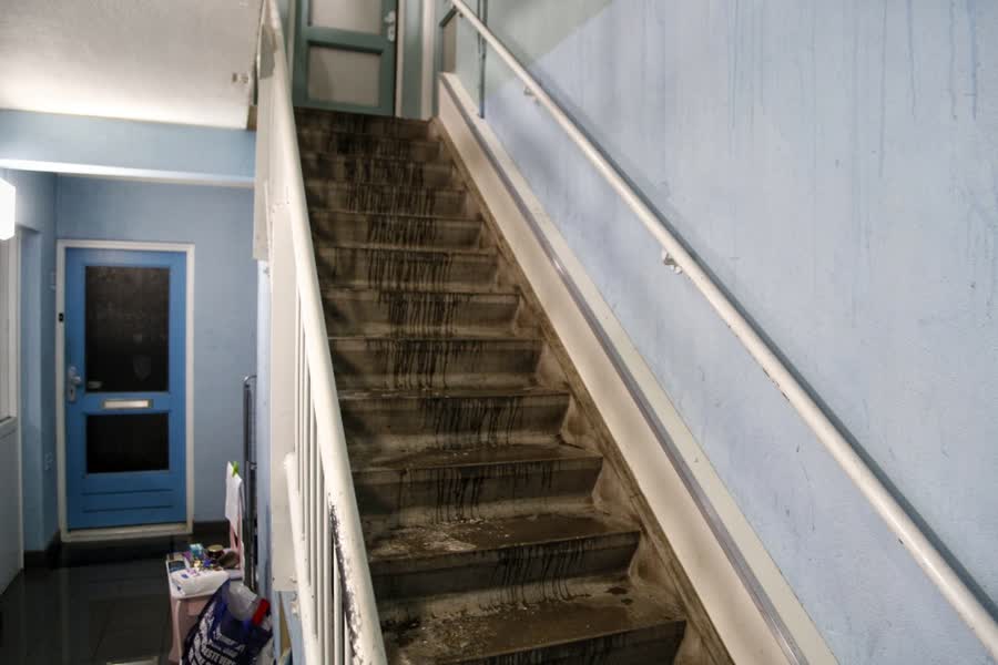 De waterschade was goed zichtbaar Foto: William van den Handel - LINQ Media