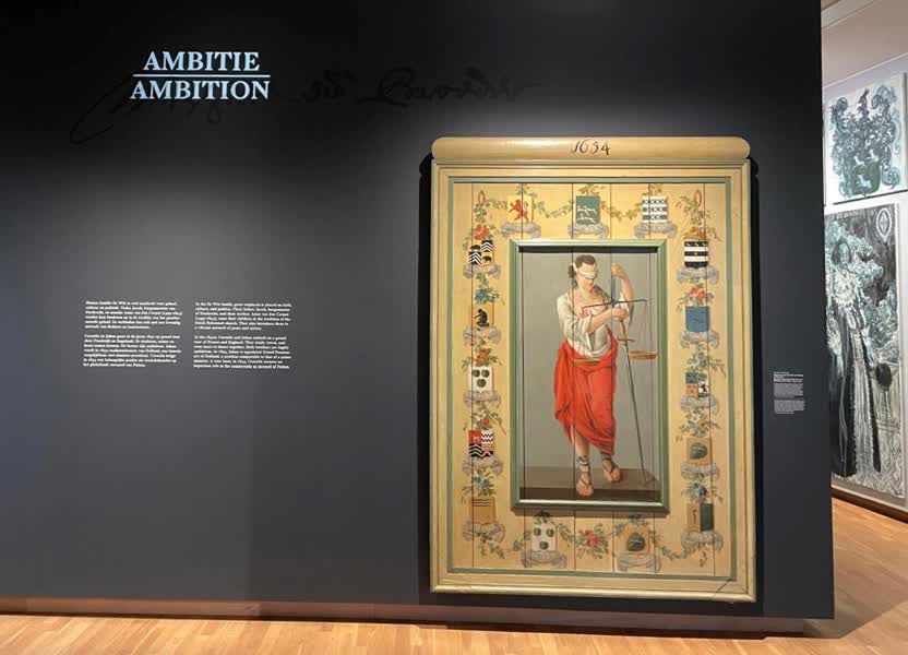 Het wapenbord toont Vrouwe Justitia en het familiewapen van De Witt en hing in de raadzaal van het voormalige stadhuis van Geervliet. Speciaal voor de tentoonstelling is het bord gerestaureerd. Het object is nauw verbonden met de rijke geschiedenis van Geervliet en met Cornelis de Witt in het bijzonder. Cornelis, de oudere broer van Johan, begon zijn politieke carrière in Geervliet, waar hij zijn eerste stappen zette in de wereld van de politiek en het openbaar bestuur.