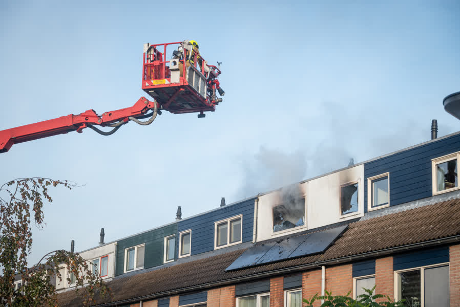 De brand was al snel uitslaand en de brandweer schaalde op naar middel brand. Aan beiden kanten van de zolder sloegen de vlammen eruit. Het kostte de brandweer wat moeite om de brand uit te krijgen.
