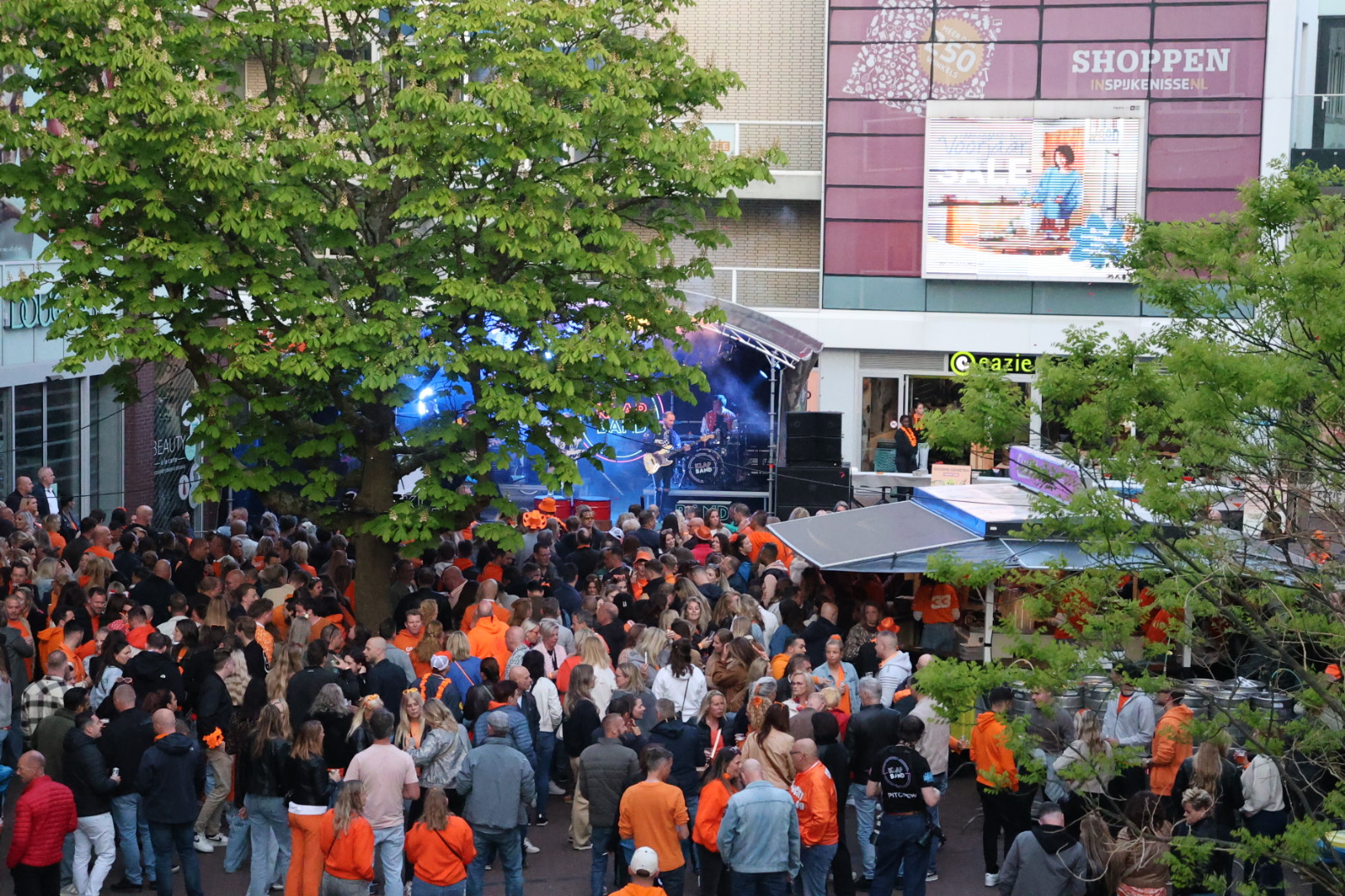 Tijdens Koningsnacht was het gezellig druk in het winkelcentrum van Spijkenisse met live muziek.