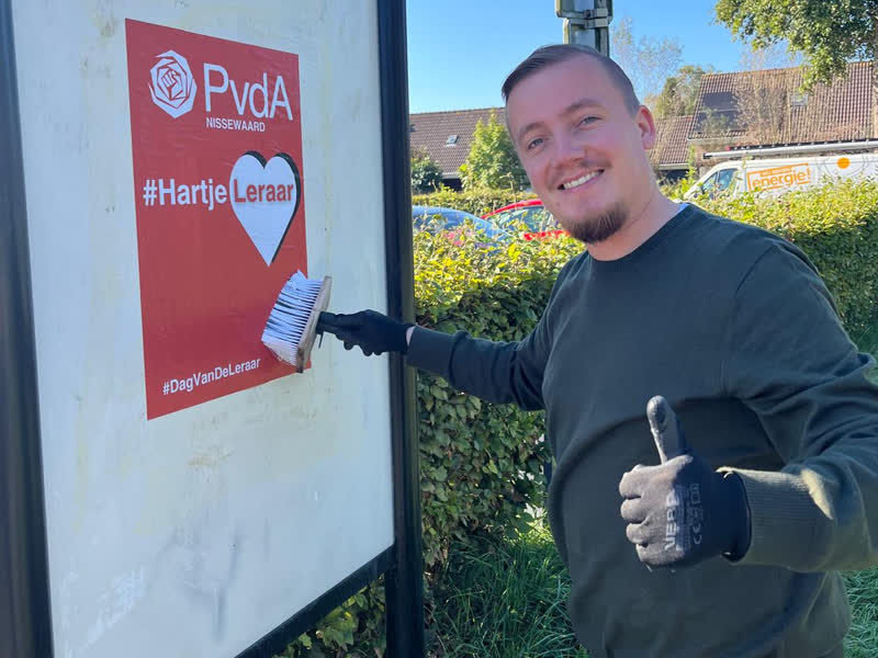 Om deze dag extra onder de aandacht te brengen, heeft PvdA-raadslid Hidde Douma namens de PvdA Nissewaard posters geplakt door heel Nissewaard. Douma, met ervaring in het onderwijs, benadrukt het belang van leraren: “Leraren zijn onmisbaar voor de toekomst van onze samenleving. Zij begeleiden en inspireren de volgende generatie. Het is belangrijk dat we hen het respect en de waardering geven die ze verdienen.” Met de actie wil de PvdA meer bewustzijn creëren voor de cruciale rol van docenten.