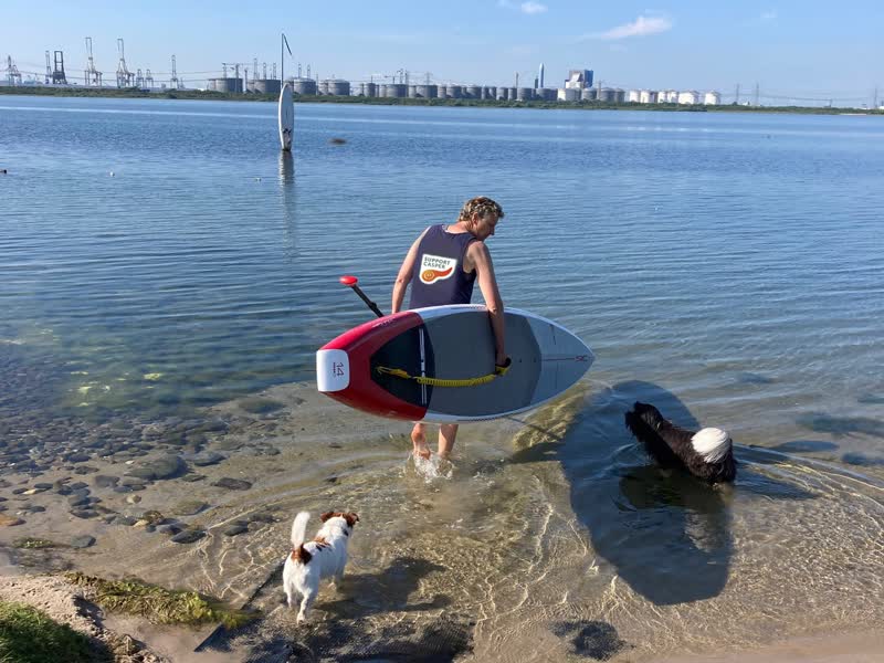 Bij de tocht zijn de weeromstandigheden van grote invloed: ‘Wanneer er veel wind staat, zullen we uiteraard wat minder hard gaan op de sup, maar normaal gesproken ga ik ongeveer 6,5 kilometer per uur. Alleen bij deze tocht ben ik ongeveer acht tot negen uur per dag bezig over een lengte van rond de 48 kilometer, dus dat tempo moet ik dan nog wel vol zien te houden.’