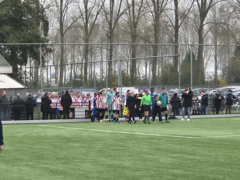 En ook langs de lijn werd intens meegeleefd met het duel. Bij elke doelschop van de Hekelingen doelwachter Dirven werd naar verluid pizza geroepen maar de doelman van de bezoekers heeft in de verste verte niet het postuur van Jeroen Verhoeven of, van vroeger tijden, Piet Schrijvers sterker nog waar deze twee genoemde doelwachters twee meter in de breedte hebben en hadden had doelman Dirven dit in de lengte en deed hij zijn werk zeer bekwaam.